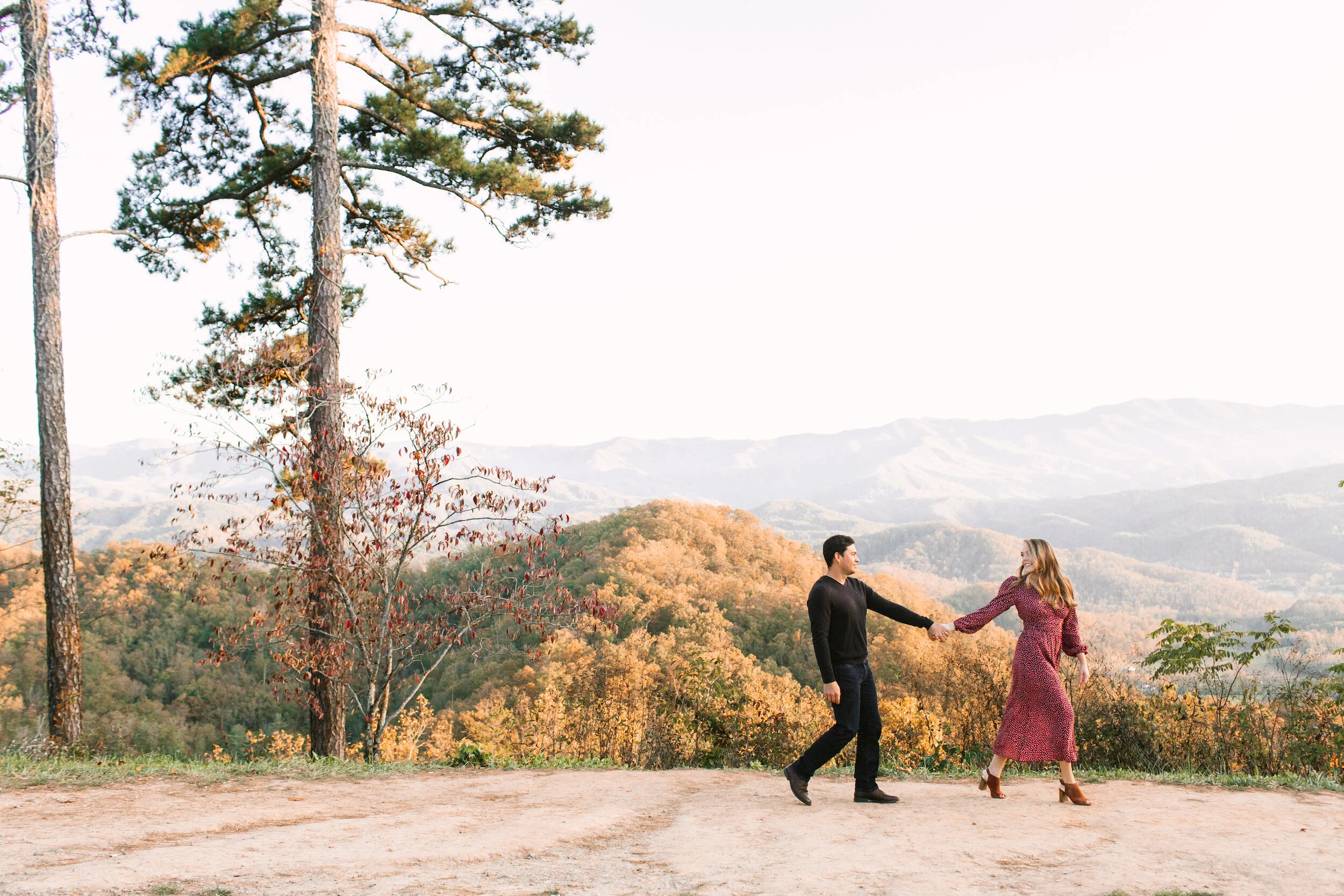 When Rachel called to tell me she and her husband were coming to stay in the Smoky Mountains and wanted to invest in some a couples photo session, I was absolutely thrilled to say yes! Instead of heading to Max Patch (which you know I love), we decided to shoot a little closer to where Rachel and David were staying, so we set up at a lookout on Foothills Parkway. Can I just say beautiful things can happen with great lighting and a couple who is willing to laugh, dance, and cozy up together? Rachel and David were such a dream, and I’m so happy with how these photos turned out.